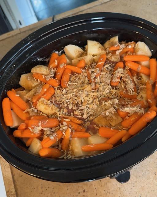 • Place the pot roast in the slow cooker and coat it with the soup mixture.