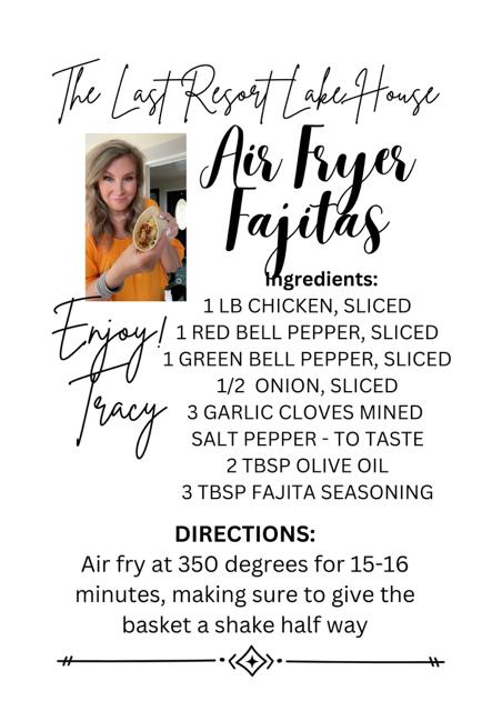 Okay, not a real club (yet), but if you make these air fryer fajitas, tag me on Instagram @thelastresortlakehouse—I wanna see your creations! Whether you’re cooking in your comfiest pajamas or hosting your neighbors with margaritas in hand, you’re doing it right.