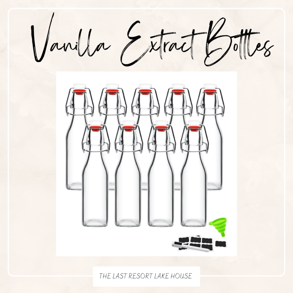 You can find vanilla beans online (I like to grab mine in bulk), and those little swing-top bottles? Amazon, baby. I’ll link my favorite set below—it even comes with a funnel and chalkboard labels, so you don’t have to go hunting for extras.