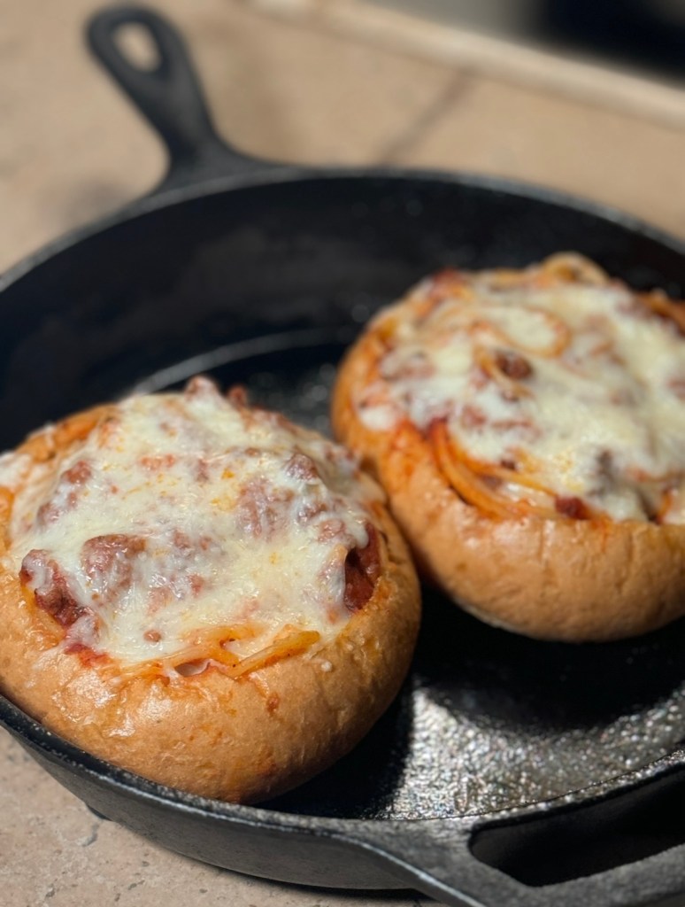 It’s a one-dish wonder. You’re literally eating out of the bread. No fancy serving dishes required. It’s flexible. Don’t have marinara sauce? Use Alfredo. Don’t have mozzarella? Use cheddar. Got leftovers? Throw them in. This dinner doesn’t judge. It feels special. Even though it’s simple, serving dinner in a bread bowl makes it feel like you’re at a cozy café instead of your kitchen table.